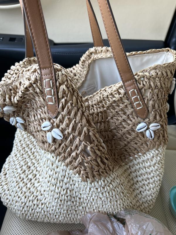 Straw handbags are classic. They don’t go out of style. Mine has seashells. It can be worn dressed up or down.