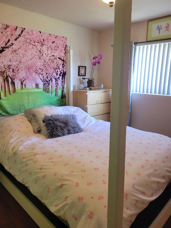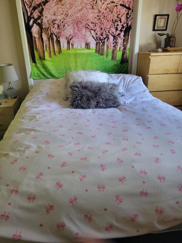This comforter fit amazingly and feels great. It was long enough to fit my thick mattress, which is always a problem when it comes to comforters. I ordered myself a duvet because I just feel like it definitely needs a cover, but here is what it looks like when it is not covered in just the material as is.